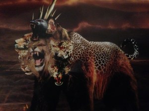I want you to note that if you take the beasts in Daniel 7 – a lion with wings, a bear, a four-headed leopard, and a ten-horned beast – and combine them all together, you get a seven-headed, ten-horned beast with lion, bear, and leopard characteristics. And, this just happens to be exactly what we see when the antichrist declares himeslf to be “god”:
